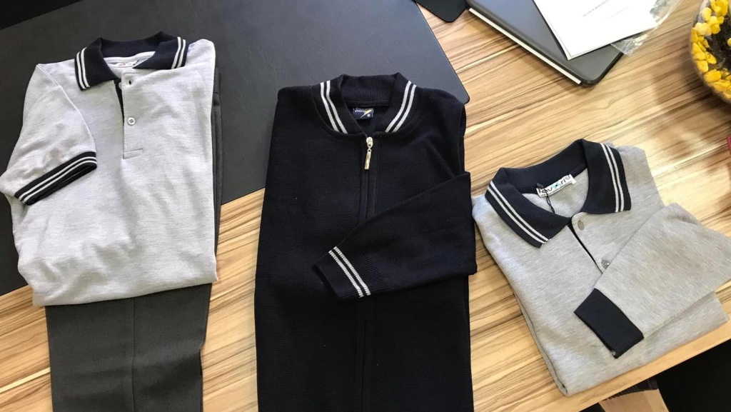 Okulumuz kıyafeti resimde görüldüğü gibi gri tişört ve gri uzun kollu sweat, lacivert hırka, füme veya gri kanvas veya kumaş pantolondur.
